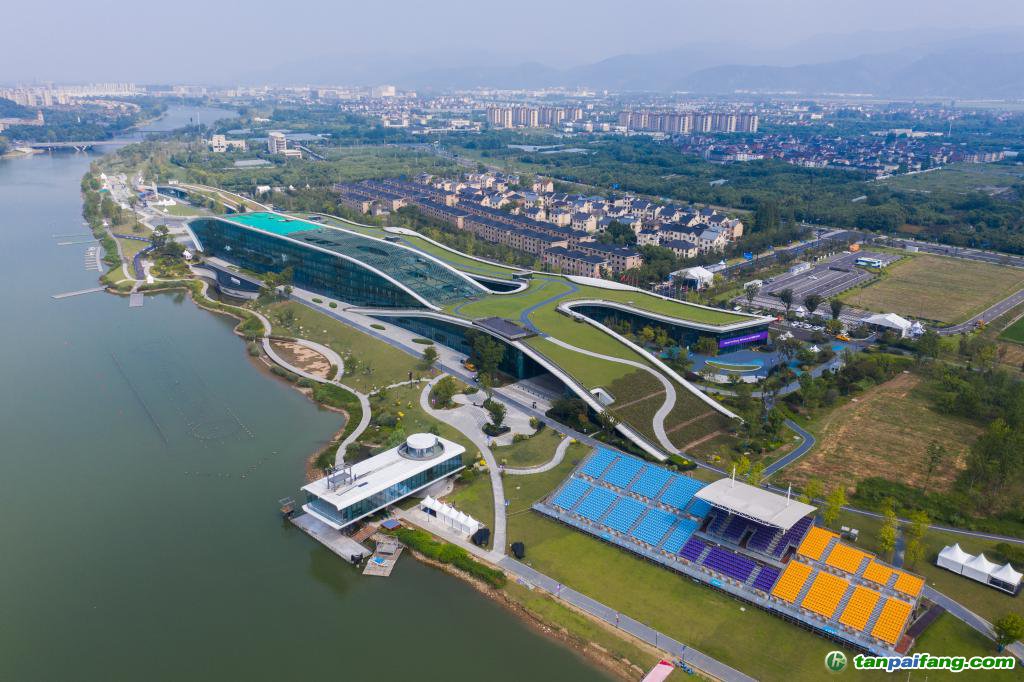 8月24日,空中俯瞰杭州富陽水上運(yùn)動中心,屋頂被綠植覆蓋。新華社記者 徐昱 攝