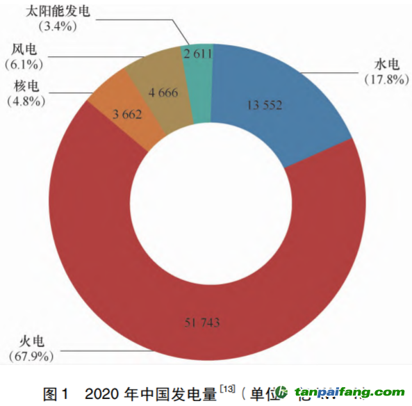 據(jù)全球大氣研究排放數(shù)據(jù)庫顯示,我國碳排放總量2020年達到117億噸,其中燃煤產(chǎn)生的二氧化碳可達到碳排放總量的80%~90%。從行業(yè)角度分析碳排放,我國碳排放量最大的行業(yè)為電力、制造、采掘和交通行業(yè),其總和占全國碳排放量的90%。在我國能源利用方式逐漸優(yōu)化的同時,不可否認的是,2020年電力生產(chǎn)的主要來源依舊是依靠燃煤進行發(fā)電的火力發(fā)電廠,水電在我國電力生產(chǎn)中的占比僅為17.8%(見圖1)。與火電相比,水電具有巨大的減碳效益,按照0.228公斤/千瓦時碳排放進行核驗,每減少10兆瓦火電裝機容量,那么一年的累計碳排放量就能夠減少1萬噸以上,與此同時,利用水力進行發(fā)電還可以大量減少二氧化硫、二氧化碳、PM2.5、粉塵和煤灰等廢氣、煙塵的排放。
