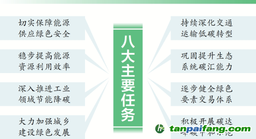 《實施方案》分為總體要求、主要任務(wù)、科技創(chuàng)新、政策創(chuàng)新、全民行動、保障措施六大部分,提出多項工作舉措,聚焦破解綠色低碳發(fā)展面臨的瓶頸制約,分類別明確碳達(dá)峰目標(biāo)任務(wù),并建立碳預(yù)算、碳足跡、碳金融、碳要素和碳數(shù)字等五大政策創(chuàng)新體系,以期為全國提供可操作、可復(fù)制、可推廣的經(jīng)驗做法。 內(nèi)-容-來-自;中_國_碳_0排放¥交-易=網(wǎng) t an pa i fa ng . c om