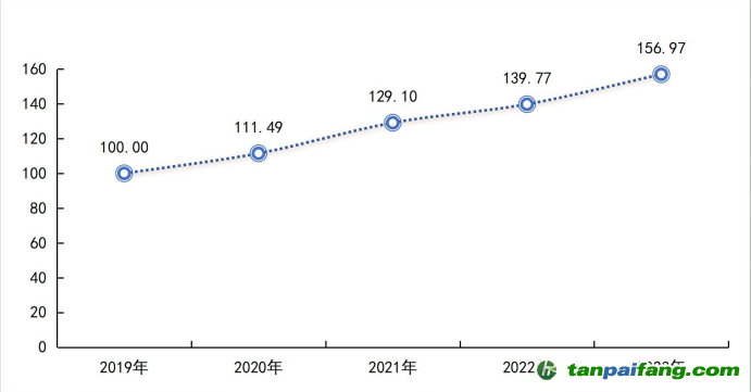 報告總指數(shù)運行結(jié)果顯示,2019-2023 年,“雙碳”能源產(chǎn)業(yè)轉(zhuǎn)型發(fā)展水平呈現(xiàn)持續(xù)上升趨勢,2023 年指數(shù)值達到 156.97 點,同比增長 12.31%,基期以來年均復(fù)合增長率達到 11.93%??傮w來看,我國的產(chǎn)業(yè)結(jié)構(gòu)和能源結(jié)構(gòu)調(diào)整優(yōu)化取得明顯進展,重點行業(yè)能源利用效率大幅提升,煤炭消費增長得到嚴(yán)格控制,新型電力系統(tǒng)加快構(gòu)建,綠色低碳技術(shù)研發(fā)和推廣應(yīng)用取得新進展,綠色生產(chǎn)生活方式得到普遍推行,轉(zhuǎn)型工作取得重要階段性成果,逐步邁入高質(zhì)量發(fā)展新階段。