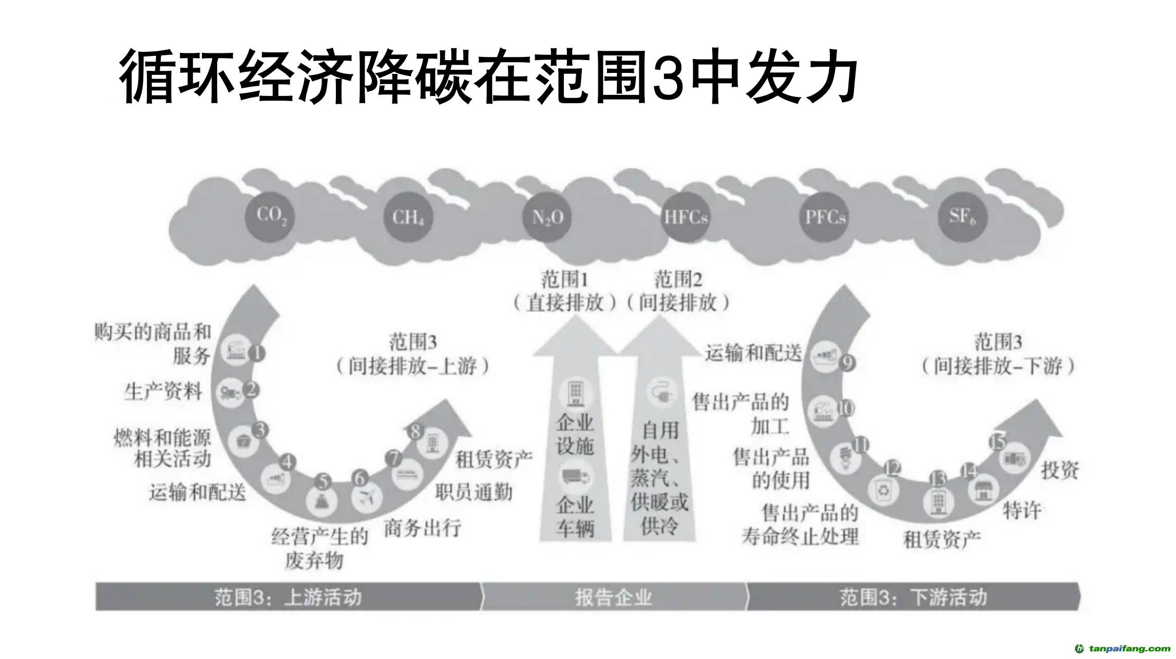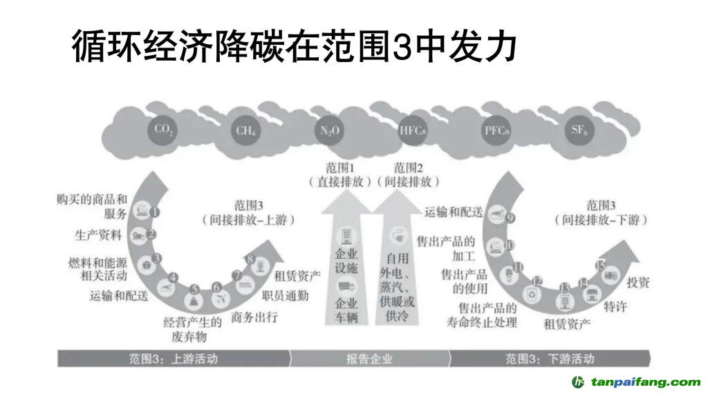 因此,諸大建認(rèn)為:“循環(huán)經(jīng)濟(jì)降碳主要在范圍3中發(fā)力,范圍1、范圍2與能源更相關(guān)。”在循環(huán)經(jīng)濟(jì)主要發(fā)力的四個(gè)領(lǐng)域——能源、工業(yè)、交通、建筑中,產(chǎn)品碳足跡核算涉及范圍1、范圍2、范圍3。范圍1指的是直接排放,如企業(yè)直接使用化石能源等產(chǎn)生的碳排放;范圍2是間接排放,如企業(yè)使用火電產(chǎn)生的碳排放;范圍3則指,上下游活動(dòng)產(chǎn)生的間接排放。同時(shí),諸大建指出,企業(yè)在范圍3中發(fā)力循環(huán)經(jīng)濟(jì)要更精準(zhǔn)細(xì)化,與降碳的四大領(lǐng)域結(jié)合。“企業(yè)必須了解所處行業(yè)上下游是誰(shuí),循環(huán)經(jīng)濟(jì)才能更好發(fā)力。”他說(shuō)。 本@文$內(nèi).容.來(lái).自:中`國(guó)`碳`排*放^交*易^網(wǎng) t a np ai fan g.c om