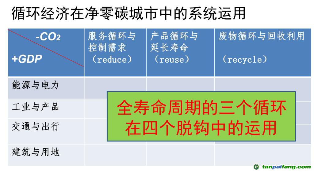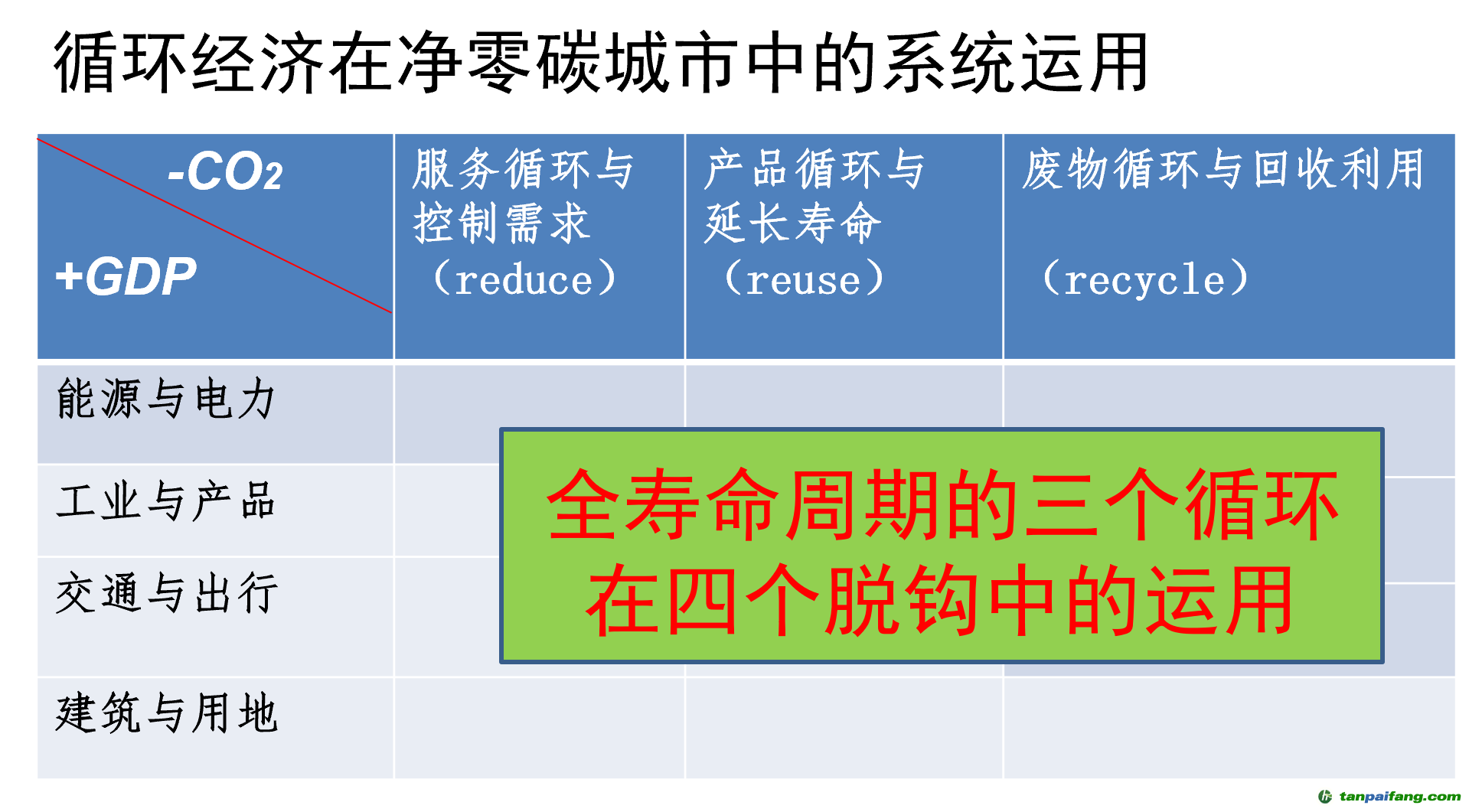 國(guó)際上研究一個(gè)城市的碳排放量,要想實(shí)現(xiàn)凈零碳排放,主要通過(guò)三種方式:降低能源消耗,提高能效,以及通過(guò)循環(huán)經(jīng)濟(jì)降碳。其中,通過(guò)循環(huán)經(jīng)濟(jì),可將材料流中隱含的碳降低。2019年來(lái)自EMF的一項(xiàng)研究顯示,世界范圍內(nèi),降碳55%與能源流有關(guān),45%與產(chǎn)品物質(zhì)流有關(guān)。 本`文@內(nèi)-容-來(lái)-自;中^國(guó)_碳0排0放^交-易=網(wǎng) ta n pa i fa ng . co m