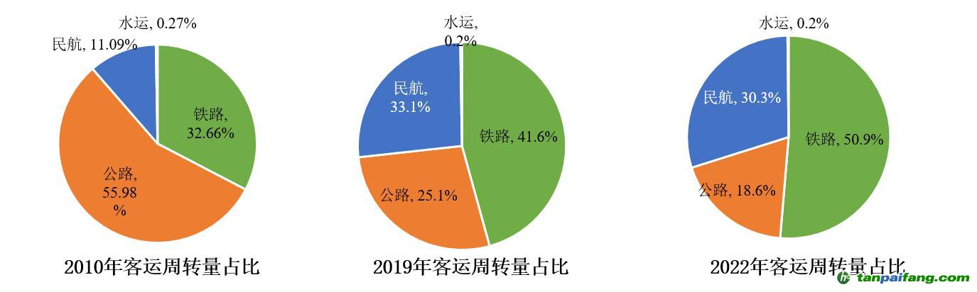 他介紹,根據(jù)其團(tuán)隊的研究成果,2010—2022年間,在高速鐵路、民航機(jī)場等基礎(chǔ)設(shè)施建設(shè)與經(jīng)濟(jì)持續(xù)增長的背景下,我國民航和鐵路客運(yùn)周轉(zhuǎn)量占比持續(xù)增加。按照以往的統(tǒng)計口徑,經(jīng)過這些年的發(fā)展,我國城市間客運(yùn)結(jié)構(gòu)由以公路為主、鐵路為輔逐漸轉(zhuǎn)變?yōu)橐澡F路為主、航空和公路為輔的格局。