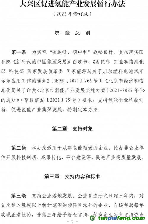 第一條為貫徹落實(shí)《大興區(qū)促進(jìn)氫能產(chǎn)業(yè)發(fā)展暫行辦法(2022年修訂版)》(京興政發(fā)〔2022〕6號(hào))(以下簡(jiǎn)稱《暫行辦法》),支持氫能企業(yè)科技創(chuàng)新,促進(jìn)氫能產(chǎn)業(yè)集聚發(fā)展,明確《暫行辦法》重點(diǎn)支持對(duì)象、申報(bào)材料要求等,現(xiàn)制定發(fā)布《暫行辦法》申報(bào)指南。 本`文@內(nèi)-容-來-自;中^國(guó)_碳0排0放^交-易=網(wǎng) ta n pa i fa ng . co m
