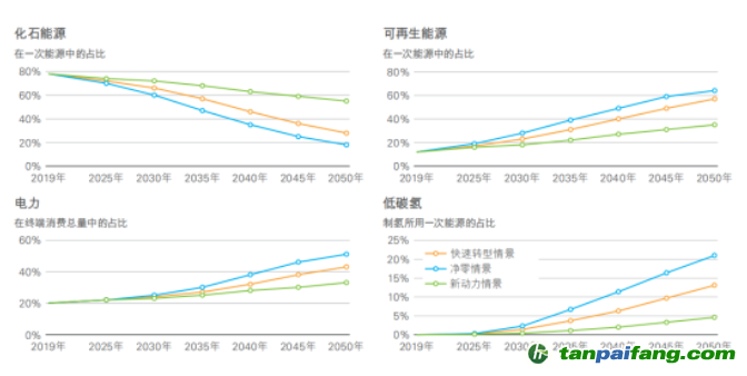 能源需求結(jié)構(gòu)發(fā)生變化,化石能源的重要性逐步下降,可再生能源占比增加以及終端能源電氣化程度提高。低碳轉(zhuǎn)型需要一系列其他能源來源和技術(shù),包括低碳?xì)?、現(xiàn)代生物能源以及碳捕集、利用與封存。 禸嫆@唻洎:狆國湠棑倣茭昜蛧 τāńpāīfāńɡ.cōm