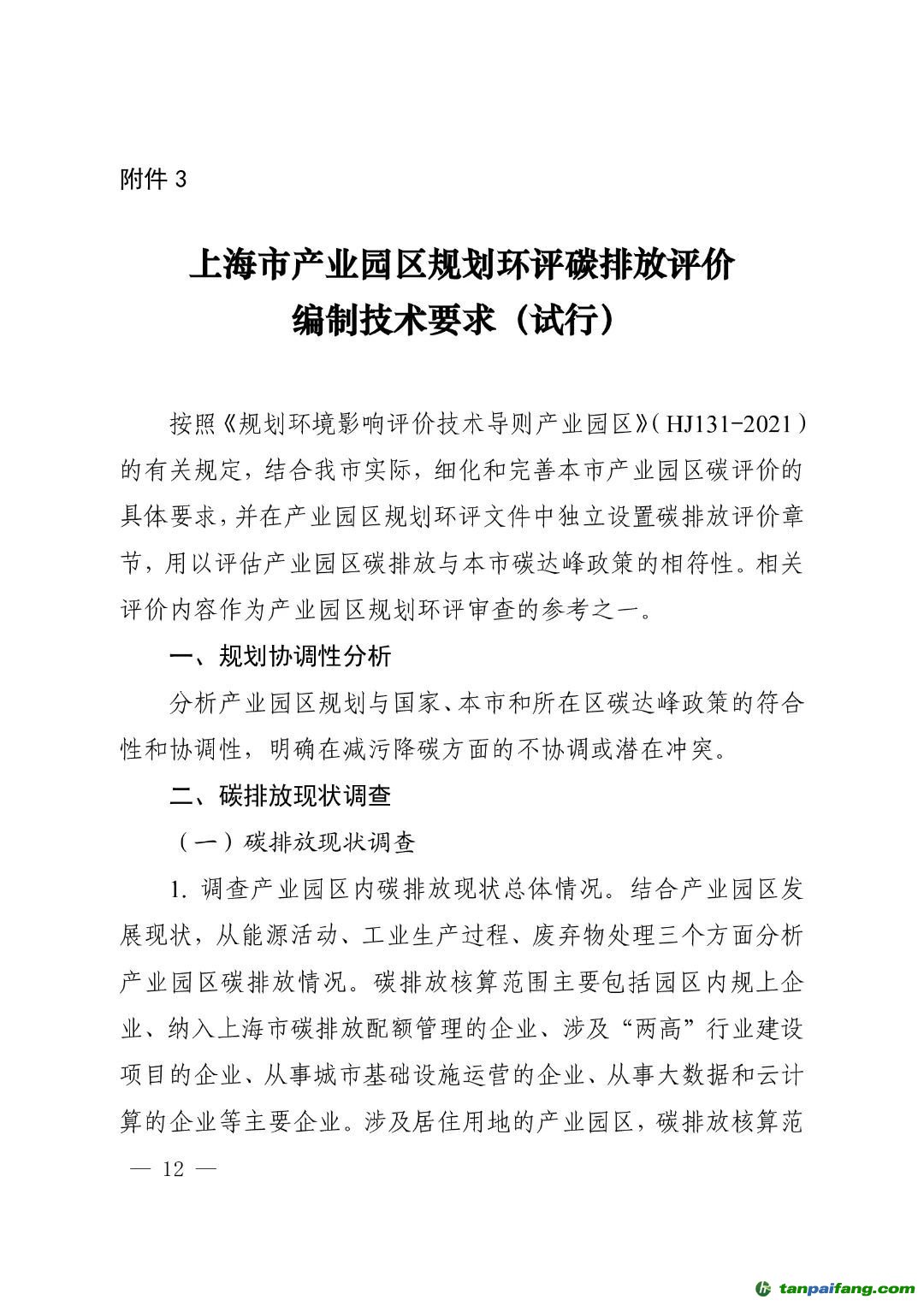3. 上海市產(chǎn)業(yè)園區(qū)規(guī)劃環(huán)評碳排放評價編制技術(shù)要求(試行)
