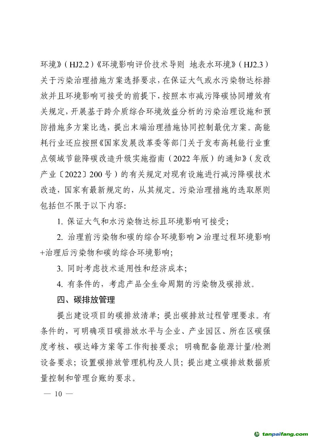 三、編制環(huán)境影響報告書的建設(shè)項目(非核與輻射類項目),按照附件2要求編制碳排放評價章節(jié),以減污降碳、協(xié)同增效為著力點,在排放源層面落實碳減排要求。編制環(huán)境影響報告表的建設(shè)項目(非核與輻射類項目)在環(huán)評文件中增加碳排放評價內(nèi)容,主要圍繞碳排放分析、碳減排措施的可行性論證等方面開展評價,有關(guān)編制內(nèi)容可參考附件2相應要求并作適當簡化。編制環(huán)境影響報告書(表)的核與輻射類建設(shè)項目可視情參考執(zhí)行。