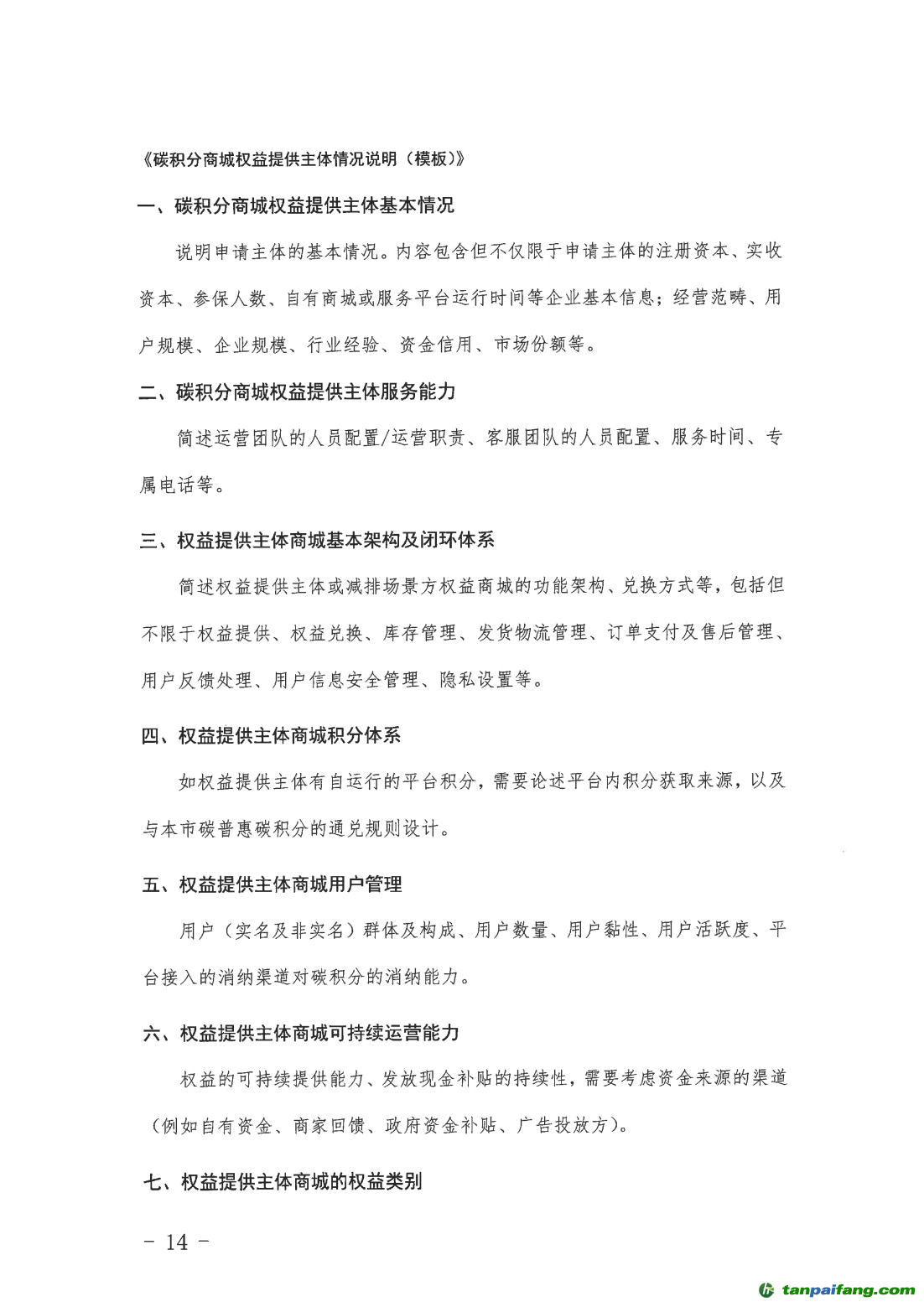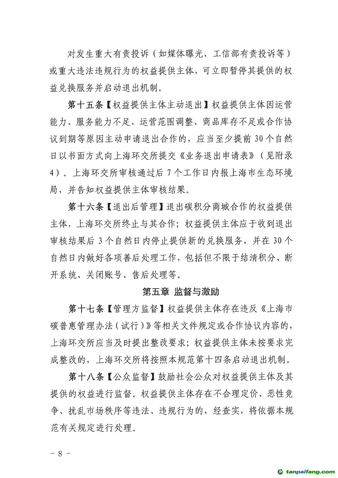 經(jīng)上海市生態(tài)環(huán)境局批復,根據(jù)《上海市碳普惠體系建設(shè)工作方案》(滬環(huán)氣候〔2022〕211號)、《上海市碳普惠碳積分使用指引(試行)》,上海環(huán)交所現(xiàn)發(fā)布《上海碳普惠碳積分商城管理規(guī)范(試行)》,規(guī)范權(quán)益商城的建設(shè)和運營,促進上海碳普惠碳積分商城健康有序運行,提升上海碳普惠可持續(xù)運營能力。